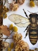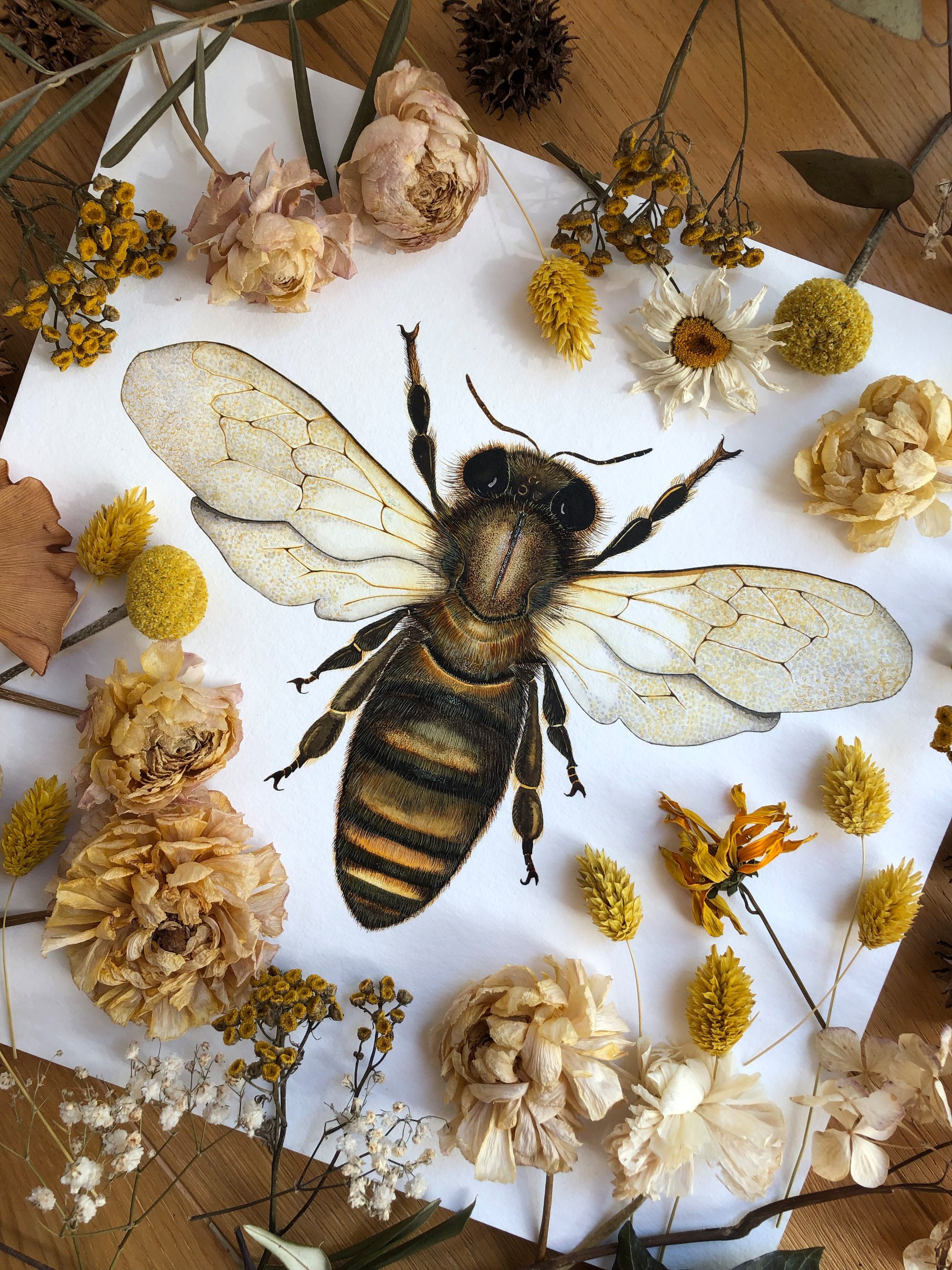 The European Honey Bee (Apis mellifera) is a golden alchemist in fur: a tiny forager whose fuzzy body collects pollen like stardust, turning flower nectar into liquid sun. In a hive of 50,000 sisters, she dances intricate waggles to map the meadow's bounty, her wings beating 200 times a second in a hum that echoes summer's heart. One bee's life makes just a teaspoon of honey, but together they weave the world's sweetness—a buzzing symphony of survival and gold.