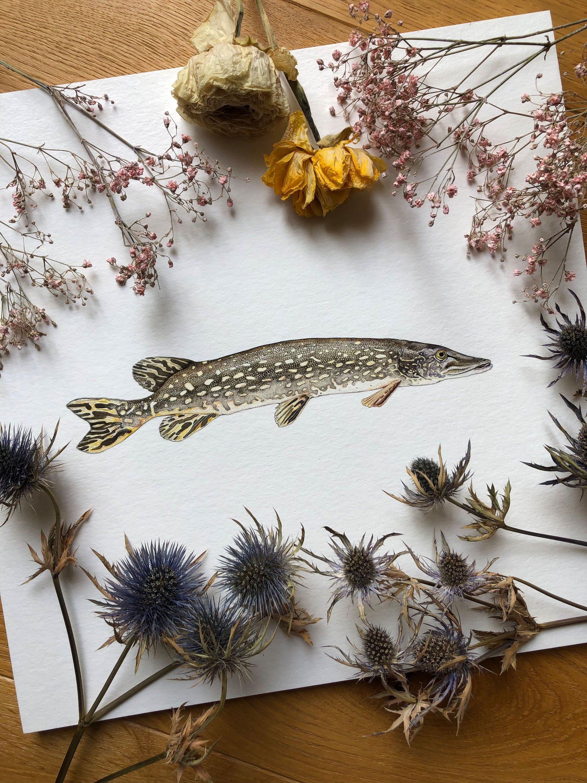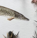 The Northern Pike is a species of carnivorous fish that can grow to a maximum length of 150 cm and weight of 28 kg. It got it's common name from its resemblance to the pole-weapon known as pike. Its earlier common name 'the luci' (now 'lucy') was used to form its taxonomic name Esox lucius and is used in heraldry.