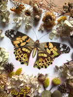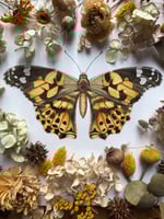Vanessa cardui, the world’s most fearless traveler: a single Painted Lady, wings ablaze in molten orange, tipped with black lace and scattered with ivory and gold. She has crossed deserts, mountains, and oceans on wings no wider than a matchbox—every year billions make the journey, yet each one is a small miracle. Captured here in glowing watercolor that makes the orange burn like sunset and the white spots sparkle like salt on sun-warmed skin.She is freedom itself, paused for one heartbeat.